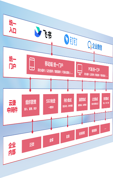 对协作平台提供支持服务,,,支持企业应用与协作平台对接,,,包含组织同步、、、消息集成、、、待办集成等。。。。支持目前主流的协作平台:钉钉、、、企微和飞书。。。